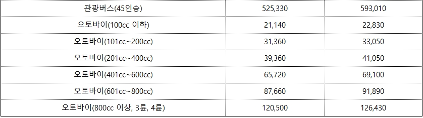 주중 기준 대표 차종별로 모닝 107,930원, 레이 110,920원, 아반떼 136,720원, 소나타 148,500원, 그랜저 161,390원, 싼타페 168,790원, 캠핑카 313,560원입니다. 상세 요금은 아래 표를 참조하세요.
